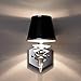 Chrome finish. Crystal accents. Black paper shade. Hexagon backplate.