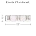 22" wide x 5 1/4" high. Extends 6" from the wall. Each glass shade is 4 3/4" high and wide. Wrapped wire inside is 3" high x 3" wide.