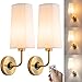 Battery operated Wall sconce: The flared shape of the white fabric lampshade with its unique curved arm design shows the mid-century vintage style look and warm lighting,ideal as bathroom vanity light, bedroom wall lights, fixtures for hallways and living areas. Includes 2 pack battery operated sconces.