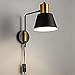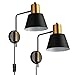 Modern Style: An iron crafted plug in sconce with simplicity black plated shade and brass accents, a great contemporary wall lighting choice for bedside, workspace and living room.