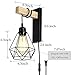 Plug in Wall Mounted Light Material: This plug in light fixture is formed by a black metal base, a cage lampshade, and a gentle and elegant flexible coil wound on a solid wood beam Real Wood beam with Natural Grain show a very Retro Decor Effect. The plug in wood wall sconce not only a lamp but also a beautiful decoration for space.