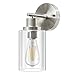 【Durable Quality & Unique Design】Sconces wall decor set of 2 comes in a matte black finish, classic simplicity clear body color with a metal base without getting oxidation & color fading for years of use, which is suitable for humid environment. Glass lampshade adopts the traditional hand glassblowing, releasing bright light effect. Clear glass shade reveals the bulb and maximizes its light. This bathroom lights perfectly fit with any style, from modern to rustic.
