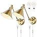 High Quality & Modern and Elegant Design: Brushed brass finished whole lamp body, Industrial modern wall lights plug in. The color of the lampshade inside is white, light brightness won't be absorbed, so it will reflect brighter. Both plug in cord and light socket are UL-listed.