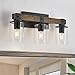 ⏩ Modern & Unique Design:This 5-light farmhouse bath wall vanity light fixture has clear hammered glass shades and a rich finish that creates a farmhouse look in your space.The glass shades bring a refined vintage feel to any room and simple yet elegant metal finish with clear hammered glass shades lends itself to placement in a bathroom, entryway, or dining room, bringing a modern farmhouse vibe to space.It can be mounted in the up or down position.