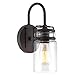 VINTAGE FARMHOUSE FEEL: Gooseneck style wall light features an oil-rubbed bronze finish with hand-painted gold trim and cylindrical glass jar shade, providing brightness and charm to your home. Elevate your space with this rustic, decorative sconce