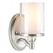 TRANSITIONAL STYLE: Featuring a stunning brushed nickel finish paired with a decorative crystal and double shade design composed of a frosted glass inner shade and a seeded glass outer shade. Elevate your space with this bright, decorative wall sconce
