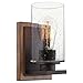 RUSTIC FARMHOUSE STYLE: Classy oil rubbed bronze wall sconce features a walnut wood style backing which pairs perfectly with the seeded glass shade. Allow this bright lamp to elevate your home and decor while fitting styles including farmhouse and modern