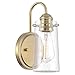 UNIQUE, MODERN STYLE: Easy-to-install 2-light saber style wall sconce features a sleek warm brass finish and tapered, open-ended frosted glass shades. Fixture shines the perfect amount of light in both up or down directions. Vertical mount only