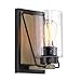 STUNNING MODERN STYLE: Classy black wall sconce features a complementary smoked birch style backing and perfectly paired clear, angled cylinder glass shade. Allow this bright lamp to elevate your home and decor while fitting multiple styles