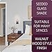 DIMENSIONS: Walnut Wood Style Wall Sconce: 9" (H) x 4.75" (L) x 5.5" Projection from wall, Back plate: 7" (H) x 0.75" (W) x 4.75" (L), Seeded Glass Shade: 6.75" (H) x 4" (D)