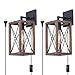 ❤【Retro Lamp Design】This wall sconces set of two plug in is formed by a black matte metal base, a diamond cage lampshade composed of hard and straight lines, and a gentle and elegant flexible coil wound on a solid wood beam, which injects classicism into simplicity and practicality. Modern design makes the home lighting