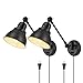 Simple and Elegant Wall Lights Plug in: Brass lamphead and black lamp body, Industrial Antique style wall lights. The color of the lampshade inside is white, light brightness won't be absorbed, so it will reflect brighter. Both plug in cord and light socket are UL-listed.