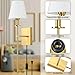 🔆【Convenient 2-in-1 Installation】: our gold plug in wall sconce set of 2 have 2 installation methods. If you have an wall outlet, you can choose plug-in installation, the modern bedside wall lantern comes with a 5ft plug cord that you can plug into a wall outlet socket without extra wiring. Considering there may be no sockets for some customers, you can also install this sconces wall lighting by hard-wired, fit US standard junction box and installation manual come with the package for easy installation.
