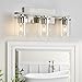 ⏩ Modern & Unique Design:This 5-light farmhouse bath wall vanity light fixture has clear hammered glass shades and a rich finish that creates a farmhouse look in your space.The glass shades bring a refined vintage feel to any room and simple yet elegant metal finish with clear hammered glass shades lends itself to placement in a bathroom, entryway, or dining room, bringing a modern farmhouse vibe to space.It can be mounted in the up or down position.