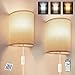 ►【Wall Sconces Lamp】: Fabric Linen Shade, Replaceable 2 x 9W Bulbs Incl., Dimmable, Timer setting, Cord Switch(Press cord switch ON/OFF 3 times to enter "Factory Reset Mode" if bulb does not response)
