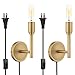 Size Info: The gold wall sconce is overall 8.6" high, 12.4" extends from a wall, 5.1" in back-plate diameter, with a 70" plug-in cord