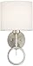 DIMENSIONS - 12.75" high x 5.75" wide, extends 7.25" from the wall. Backplate is 5.75" in diameter. Features a 6" high x 6" diameter white fabric shade