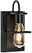 RUSTIC STYLE: Stunning wall sconce features a textured black finish, complementary real wood panel backing. Allow this open design farmhouse wall fixture to brighten any area with its versatile ability to hang in an up/down direction