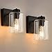 【Durable Quality & Unique Design】Sconces wall decor set of 2 comes in a matte black finish, classic simplicity clear body color with a metal base without getting oxidation & color fading for years of use, which is suitable for humid environment. Glass lampshade adopts the traditional hand glassblowing, releasing bright light effect. Clear glass shade reveals the bulb and maximizes its light. This bathroom lights perfectly fit with any style, from modern to rustic.