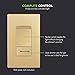 Gold color; device dimensions: 1.42” weight x 2.77” height x 1.40” depth; 15A, 120-277VAC, single pole; break-off plaster ears; ground terminal; wiring instructions included; screwless wall plate included; 1-year warranty; UL Listed