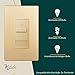 Gold color; 200W LED/CFL; 300W incandescent/halogen; compatible with dimmable light bulbs only; 3-way or single pole; 18-#12 AWG (copper only); neutral wire not required; 1-year warranty; UL listed; Wall Plate sold separately