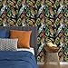 Floral Wallpaper🍃Size & Pattern: 17.7 inches wide by 78.7'' long, covers 9.68 square feet each roll, ideal for small area or furniture renovation. Dark background with palm leaves and paradise floral, night tropical feel , matte finish, high-definition print