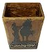 Western decor is all about spunk and spirit, bringing together the desert beauty of the southwest and all its inhabitants with rugged cowboy charm and rustic good looks. This particular design style takes you back to the Old Wild Wild West World an image of a cowboy patting his horse in a silhouette design. The closer to the base of the bin is a border of silver leaf floral scroll artwork.