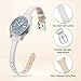 【Unique design for women smart watch band】The ladies watch bands replacement feature a polished stainless steel buckle in black and silver and even in rose gold. The thin watch bands for women tapers down to a narrower width at the buckle such as 20/14, meaning 20mm wide at the lugs and 14mm wide at the buckle. Also, all the stitching is even, and the thread color matches the leather perfectly. A removable sliding keeper keeps your strap firmly in place. Its elegant look stands out in a crowds.