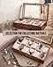 [Multifunctional Organizer] The second layer of the watch jewelry organizer is a multifunctional organizer with ample space for eyeglasses, necklaces, earrings, rings, brooches, tie clip, cufflinks. The brass retro lock can be easily opened with only one hand, making it breeze to take out your items and keep your desktop tidy