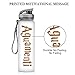 Inspirational Time Markers: This 32 oz water bottle features motivational quotes and time markers, a translucent frosted finish and a volume scale to help measure your daily water intake and encourage you to drink more water to better achieve your fitness goals, such as weight loss, muscle gain, etc.