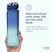 DRINK 64 OUNCES OF WATER DAILY EASILY WITH THIS WATER BOTTLE: With a time marker measuring how much water you should be drinking hour-by-hour, you can stay on track with your water consumption each day.