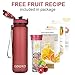 REFRESHING AND FLAVORFUL DRINKING: Say goodbye to tasteless water and fill this infuser water bottle with lemon, blueberry, ginger, strawberry, or mint for an extra punch of flavor, vitamins, and nutrients. Keep the seeds and pulp from getting your way with the built-in filter. This water bottle with time marker will help you keep track of your daily water intake.