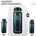 【TIME & VOLUME MARKED】- The motivational time marker reminds you to drink enough water throughout the day and the volume marker gives you a clear view of the water capacity.