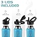 3 LIDS -- The bottle comes with 3 types of lids to meet almost all your usage needs. Flip lid for slow hot drinks, pop-up spout lid for fast-flow drinks, and straw lid for your straw preference.