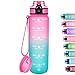 【Motivational Quote & Time Marker】32 oz water bottle with unique inspiration quote and time marker, reminding you to stay hydrated. The capacity marker helps you tracking daily water intake. A silicone straw makes you enjoy spill-proof sipping without effort. A necessary have for people of different occupations such as athletes and white-collar workers.