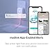 Alerts include powerful LED strobe light, built-in 100dB alarm, mobile phone notifications, and voice alerts with Google speakers providing real-time notifications wherever you are