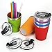 Stainless Steel Tumbler: This 24 Ounce tumbler keeps drinks frosty for up to 24 hours with sweat-free double-wall insulation; Features a twist-on leak-proof lid with splash-proof gasket and 2 straws, standard size and jumbo