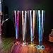 The colored champagne flutes are the perfect addition to any party! With a short stem, these flutes are great for shorter drinks and cocktails. The iridescent glass is stunning and will add a pop of color to any table setting. These glasses can be used for more than just champagne. They're also perfect for water, juice, or even ice cream floats! For the champagne-loving hostess who wants to make a statement, there's nothing quite like these multicolored, Iridescent Champagne Flutes.