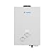 ECO-FRIENDLY WATER HEATER: Save energy using less gas during the warm months with the Marey Tankless Liquid Propane Gas Water Heater; Color: White; Weight: 22 pounds