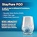 RELIABLE FILTER FOR YOUR PEACE OF MIND. StayPure Water Purification Pods provide affordable, clean, fresh, great tasting drinking water from any potable drinking water tap worldwide. The pod helps eliminate chlorine, bad taste, and stale odors. It provides trace minerals while balancing pH and improving alkalinity.