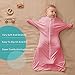 【Two-in-one design】:Wearble blanket's sleeves can help your baby transition from swaddling to sleeping bag. When your baby is 0-3 months old and still unable to roll over, wrap his hand in his sleeve to help reduce his startle reflex. 3-9 months old baby can open the sleeves after turning over on his own without restricting the baby’s hand movements.