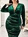 Features: plus size, soft velvet, plunging v neck, ruched design with great coverage to hide bulges, long sleeve, midi length