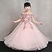 ♣♣ EXQUISITE CHIC DESIGN:Flowers girls princess wedding party dresses, Sleeveless ,Outside tulle layer design with the exquisite flower and lace appliques beading pattern,elegant kids embroidery prom ball gown.High waist design, A Line silhouette, raise the waistline, which can shapewear the body and make the dress fit well;Off the shoulder with a soft drape create an off shoulder neckline, shows your beautiful lines of shoulders collarbones.