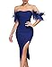 Material: Sexy off shoulder feather maxi dress made of polyester blend and soft faux fur trim. The high quality fabric is comfortable, lightweight, breathable skin friendly to wear. Evening cocktail long dress, split bodycon midi dress for women.