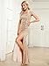 Shine like a star in this stunning cami sequin evening gowns prom dresses with a deep V neck and a high slit that shows off your curves and legs for a glamorous look.