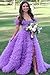 Feather Sequin Prom Dresses 2023 Tulle Ball Gown for Women Formal V Neck Evening Party Gowns with Slit