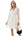 【【Features】Wrap v neck, swiss dot, elastic waist, not elastic, lantern sleeve, long sleeve, lined but not sleeves, front tie, tie waist, tiered ruffle hem, loose fit, a-line dress, no zip.