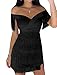 Feature:Sleeveless, Backless, Low Cut, Off Shoulder, Zipper Closure, Fringe Design, Diamonate Decoration, Bodycon Fitted Dress, Party Mini Dress