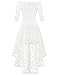 Off shoulder, Scalloped neckline, 3/4 sleeve, Floral pattern, High-low length, Flared, Irregular hemline, Concealed back zipper