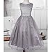 Sleeveless, Boat neck, Tulle lace layered, Rhinestones Brooch, Removable Sash Tie belt for Waist Adjustment, Back zipper closure